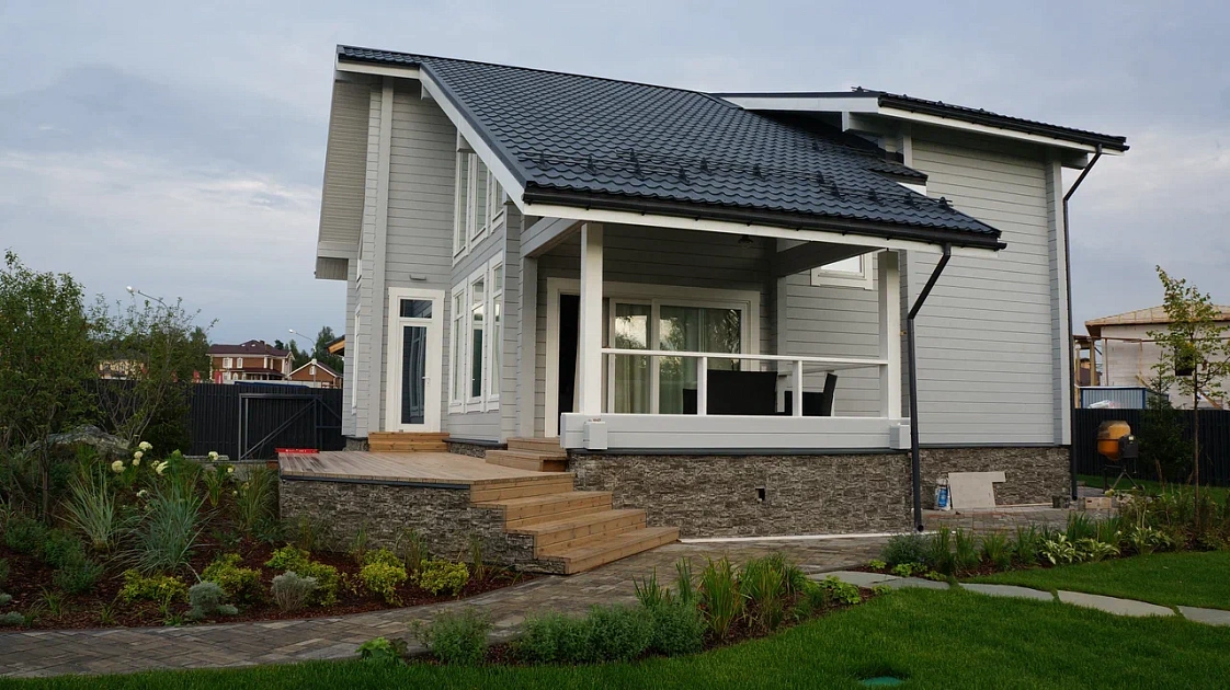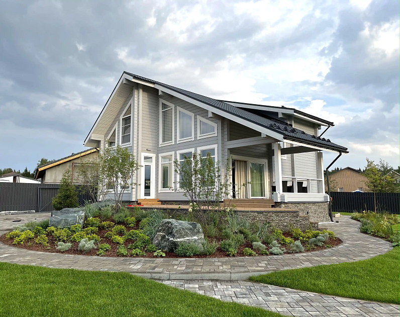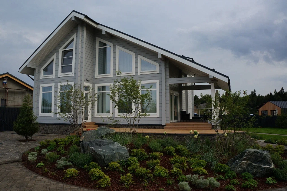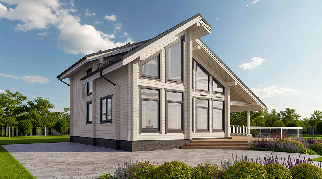 Современный стиль, открытость, простота и функциональность являются преимуществами нашего готового дома из бруса.