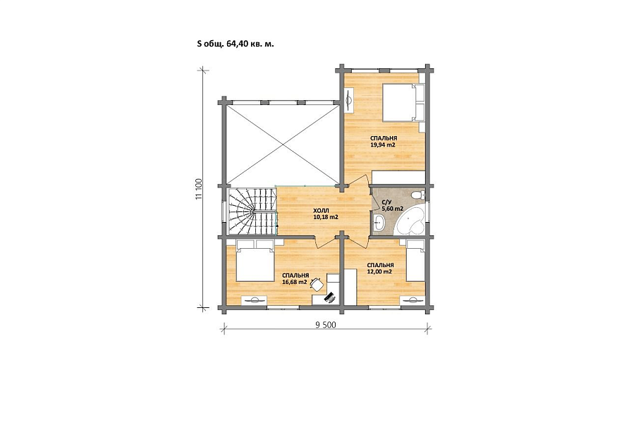 На втором этаже расположены большая хозяйская мастер-спальня, две детские комнаты и санузел.