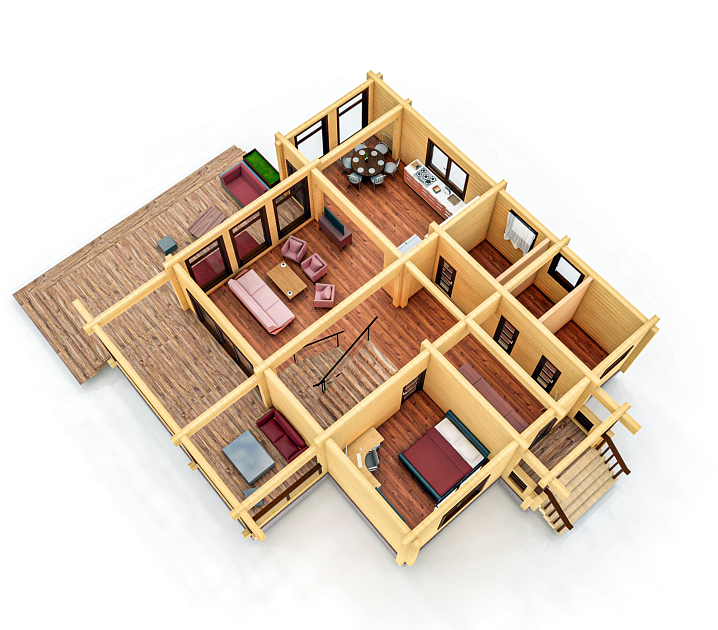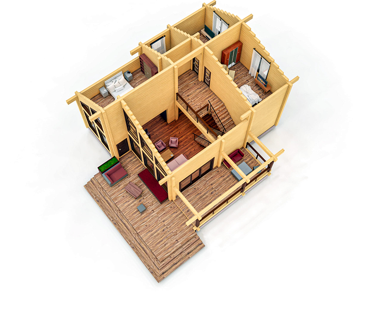 Брус клееный профилированный сечением (внешние стены) 205х185(h)мм