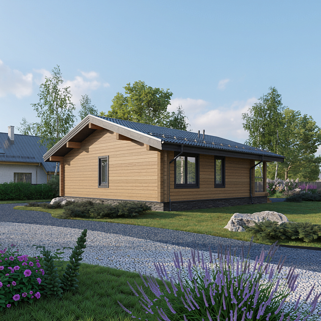 Проект «Орфей» — это гармоничное сочетание современной планировки, экологичности натуральной древесины и особого уюта. Компактный и продуманный до мелочей, он предлагает всё необходимое для комфортной жизни семьи. Ключевые характеристики: · Общая площадь дома: 87,49 м² · Материал: Клееный брус (прочность, низкая усадка, эстетика) · Дополнительная площадь: Просторная терраса 19,41 м² · Особенность: Удобный вход через террасу Планировочные решения: 1. Территория отдыха — Терраса (19,41 м²) Дом начинается с большого крыльца-террасы. Это ваша летняя гостиная, место для завтраков на свежем воздухе, вечерних посиделок с друзьями и единения с природой. Отсюда вы попадаете прямо в сердце дома. 2. Сердце дома — Кухня-гостиная (32,22 м²) Просторное светлое помещение, объединяющее кухонную зону и зону отдыха. Большая площадь остекления от террасы наполняет пространство светом и создает эффект единения с внешним миром. 3. Зона уединения — Спальни (2 x 10,56 м²) Две изолированные спальни равной площади обеспечивают комфортное личное пространство для родителей и ребенка. Достаточный размер для всей необходимой мебели. 4. Технический блок и санузел · Техническое помещение (5,27 м²): Удобное пространство для размещения котельного оборудования, систем вентиляции или использования под кладовую. · Санузел (3,51 м²): Компактный и функциональный, оборудован всем необходимым. Преимущества проекта: · Практичная планировка: Четкое зонирование на дневную (кухня-гостиная-терраса) и ночную (спальни) зоны. · Экологичность и здоровый микроклимат: Клееный брус создает идеальный баланс влажности и температуры. · Энергоэффективность: Высокие теплоизоляционные свойства бруса делают дом теплым зимой и прохладным летом, экономя ваши средства. · Быстрые сроки возведения: Конструкция из клееного бруса монтируется в сжатые сроки с высокой точностью. · Готовая эстетика: Стены из бруса не требуют сложной внутренней отделки — это уже красиво и стильно. Идеально для: Молодой семьи, пары, ищущей уютный дом для постоянного проживания или в качестве комфортной дачи.