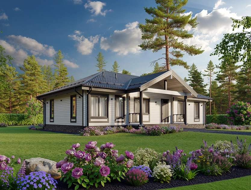 Проект «Сириус 2.0»: Один этаж для безграничного комфорта. Популярность рождает эволюцию. Представляем «Сириус 2.0» — усовершенствованную версию нашего бестселлера, созданную по отзывам клиентов. Это идеальный дом для тех, кто ценит современную эстетику, практичность одноэтажной жизни и бескомпромиссный комфорт. Всё лучшее — на одном уровне. Суть эволюции: Мы сохранили фирменный стиль и продуманность оригинала, но сделали акцент на просторных помещениях, увеличенных площадях хранения и еще более четкой функциональности каждой зоны. Это дом, в котором каждая деталь работает на ваше удобство. Ключевые особенности: * Формат: Современный одноэтажный дом из клееного бруса. * Площадь: 200 м² — оптимальный размер для постоянного проживания семьи. * Дополнения: Просторная терраса 23,8 м² и стильное крыльцо 13,55 м². * Материал: Премиальный клееный брус для идеального микроклимата, долговечности и безупречного внешнего вида.