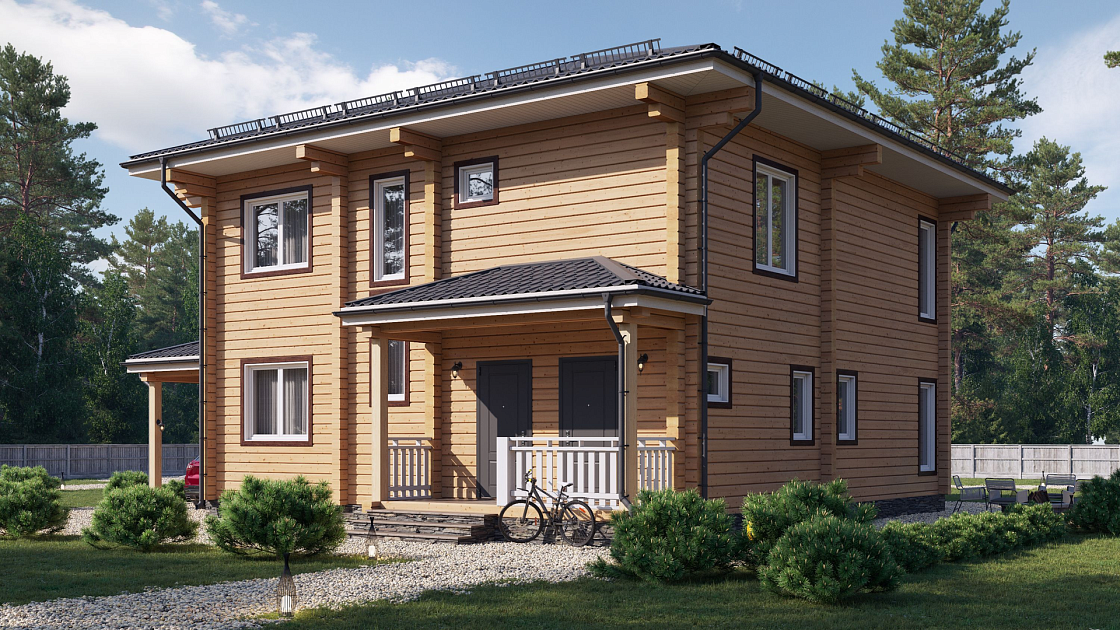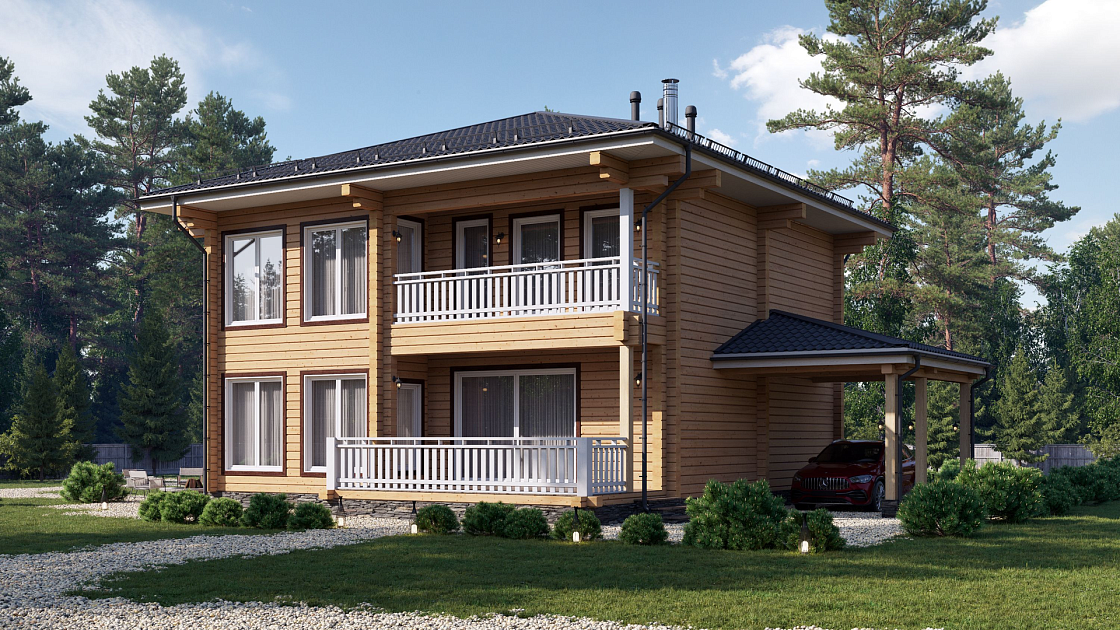Комфортный современный дом для удобного проживания большой семьи. Смотрится легко и красиво, использование природных материалов придают дому солидность и добротность.
