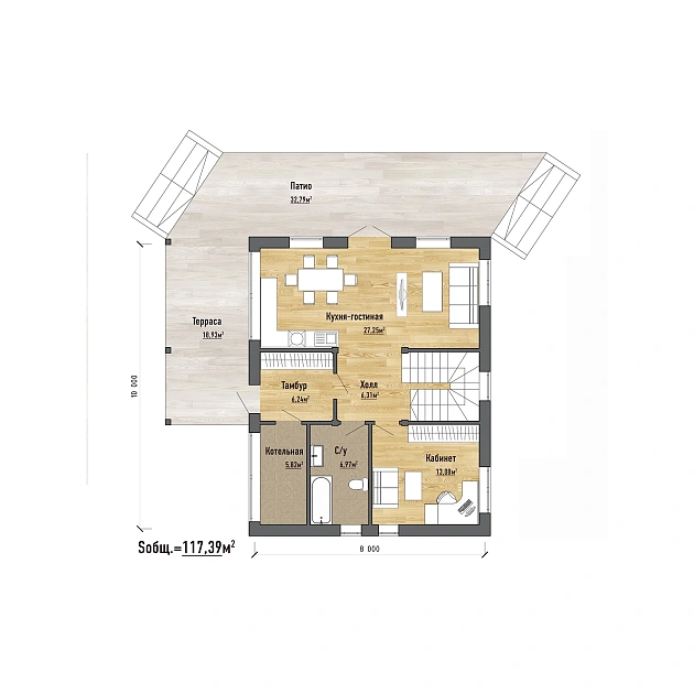 Дом «Титан» — это воплощение силы камня и тепла натурального дерева! Комбинированная технология строительства делает этот проект не только визуально эффектным, но и невероятно практичным: