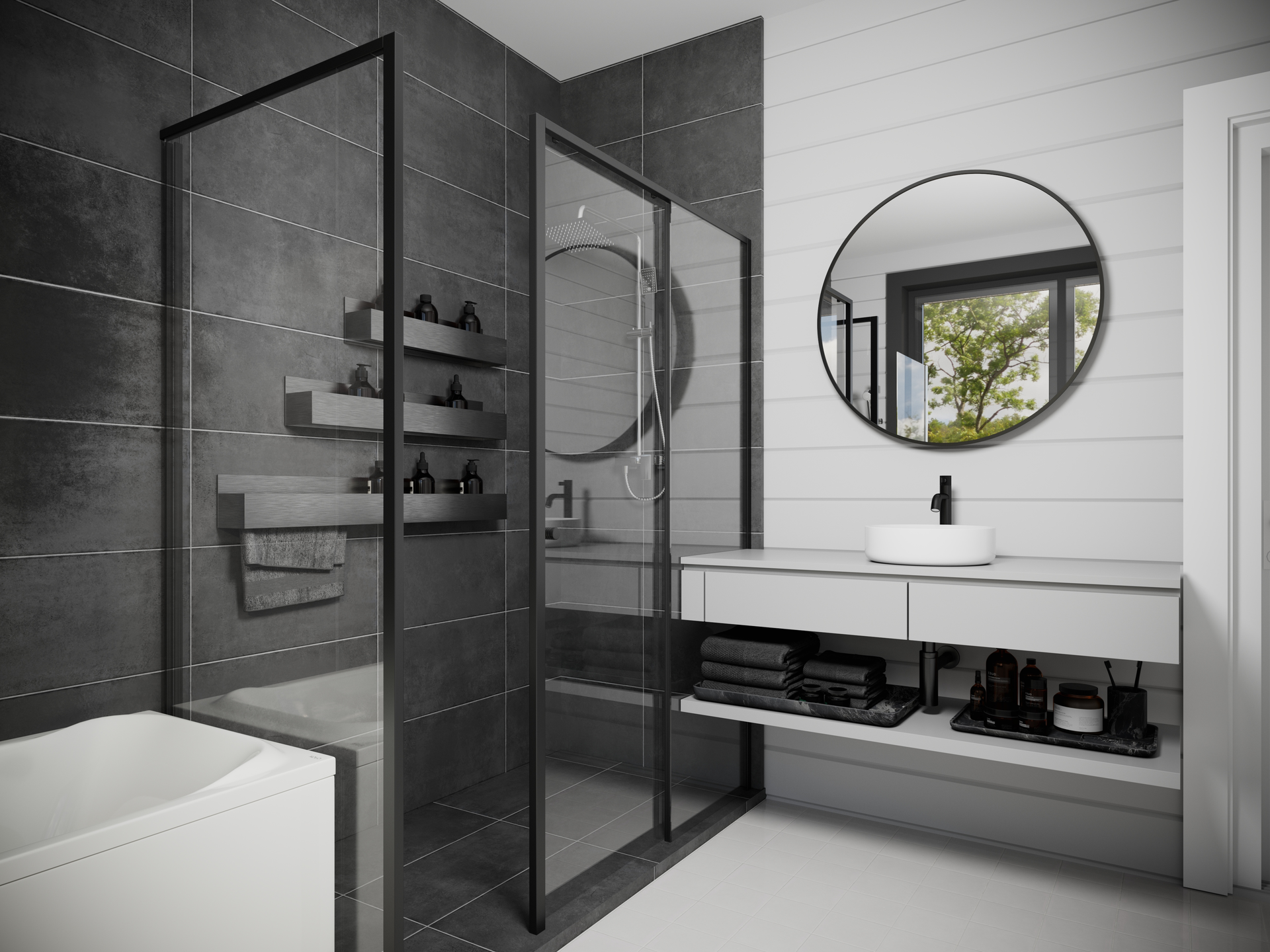 Впечатляет и санузел – просторное помещение с окном. Благодаря светлому интерьеру, функциональной скрытой системе хранения комната смотрится стильно и элегантно.