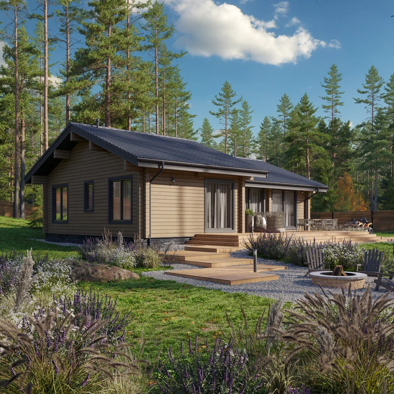 Формат: просторный одноэтажный дом из клееного бруса — никаких лестниц, удобно всем возрастам