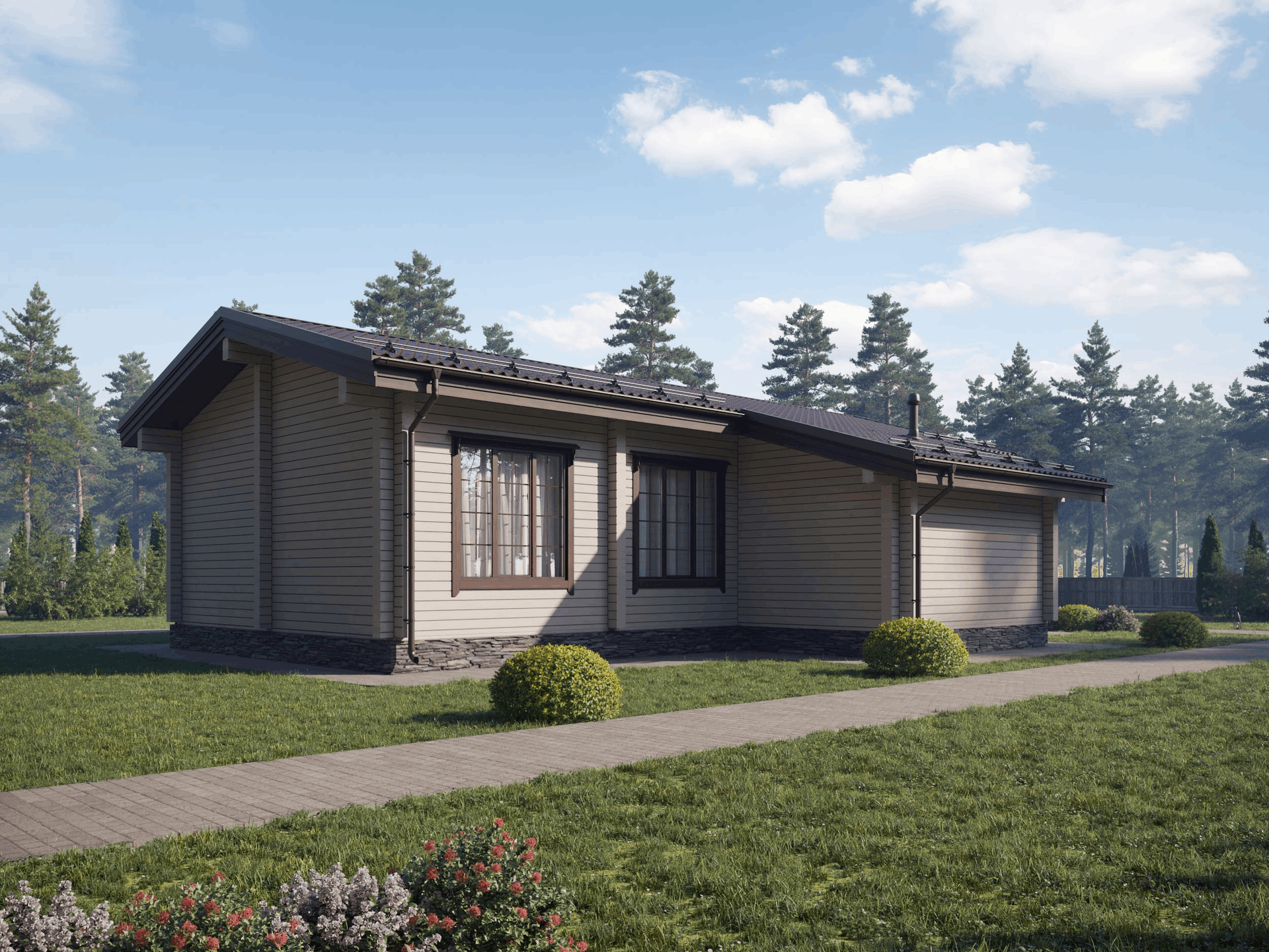 Формат: Практичный одноэтажный дом из клееного бруса собственного производства