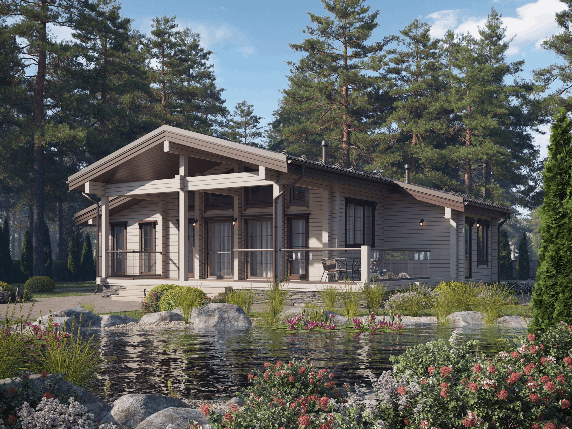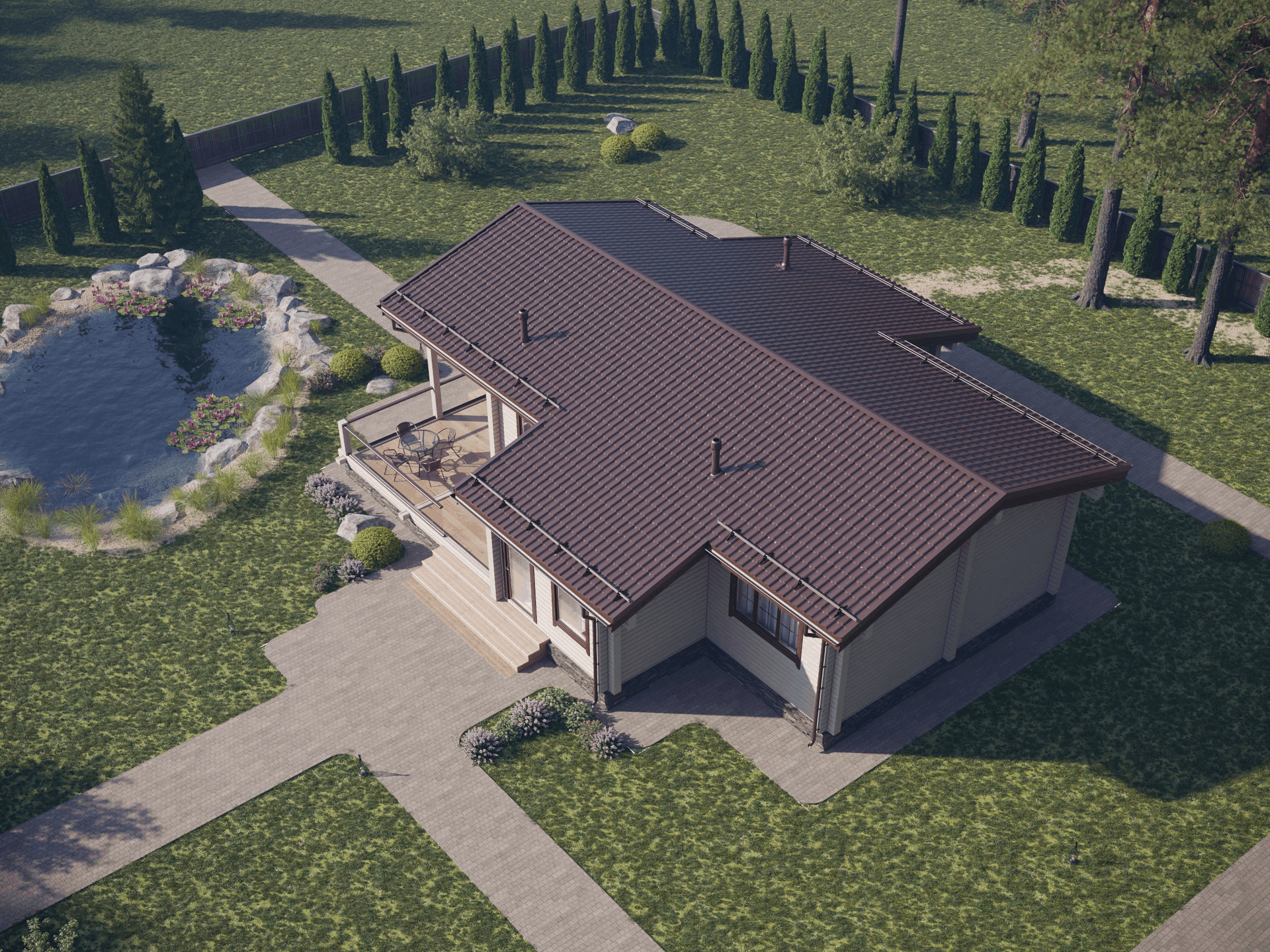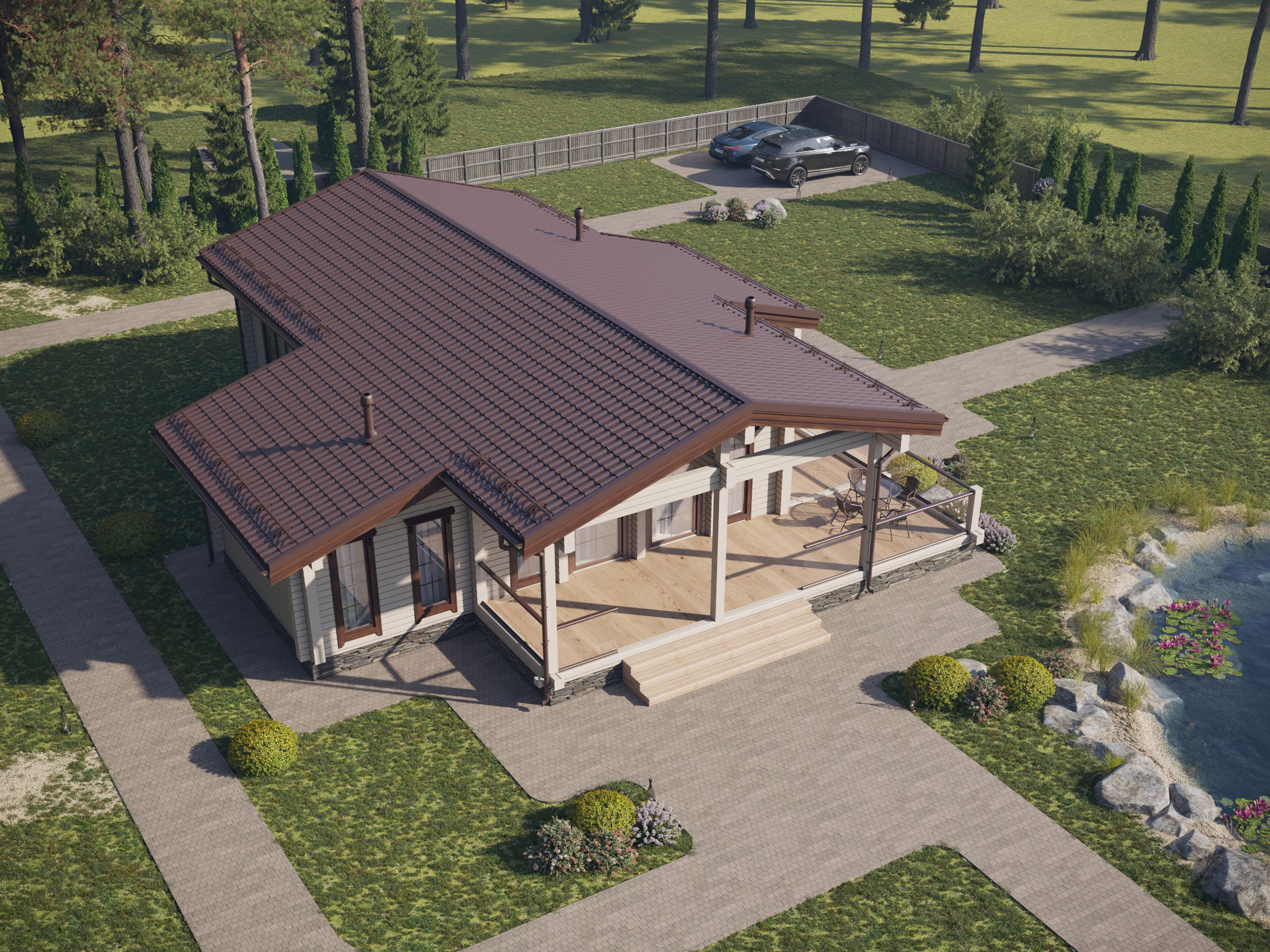 Одноэтажный дом из клееного бруса — для семьи, которая любит жить на природе